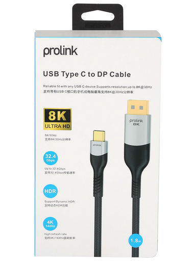 USB Type-C to DisplayPort video cable, supports 8K @ 30Hz video resolution, 1.8M