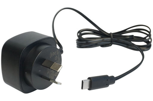 Mains USB Charger 5V 2.5A with integrated 1.2m USB-C charging cable (Black), bulk packaging