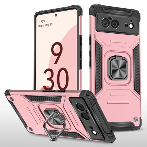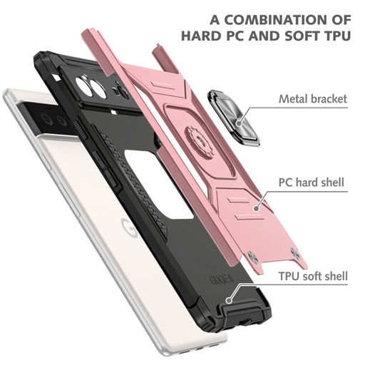 Shockproof Protective Armour Case With Rotating Ring Holder - Rose Gold