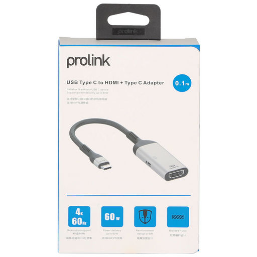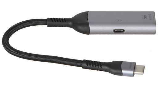 USB Type-C to HDMI A video adaptor, supports 4K @ 60Hz, includes USB-C charging socket, support charging up to 60W
