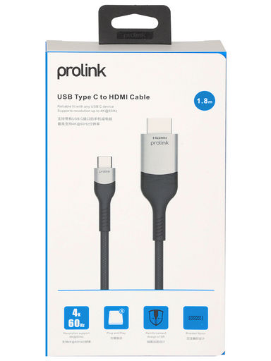 SUPPORTS 4K60 RESOLUTION USB Type-C to HDMI cable 4K60 1.8M This USB-C to HDMI cable supports 4K UHD resolution at 60Hz. It can connect your USB-C device to your HDMI monitor or projector. It features a braided nylon jacket, durable aluminium connector shells, and cable strain relief for extra protection.