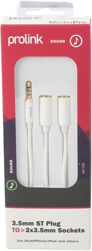 Splitting a 3.5mm Quad plug into two 3.5mm Quad sockets. 4 pole 3.5mm connection supports AV & control of smart phones, etc.