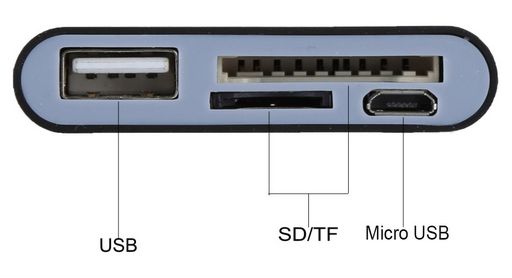 USB Type-C Plug USB Type-B socket Micro-USB socket SD card slot reader Micro SD card slot Android, Apple and Microsoft