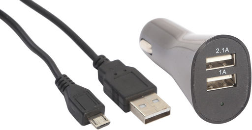 Dual USB IN-CAR-Charger With Data/Charging Cable-Black