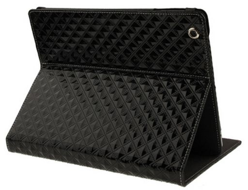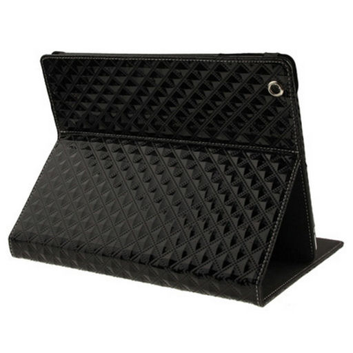 TABLET HOLDER WITH FLIP Checkered Style Folding Leather Case - Black Hard case with protective flip to protect screen. Tough leather outer, soft felt inner. Some models open into stand format.