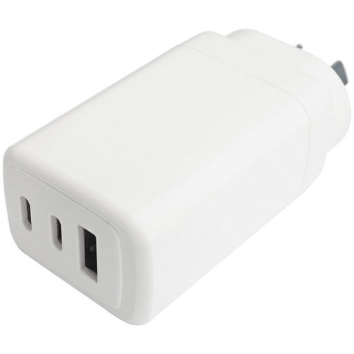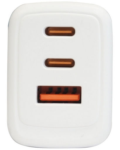 Mains USB Charger QC3.0 USB-A + 2x USB-C PD Socket (65W max), White, Retail packaging