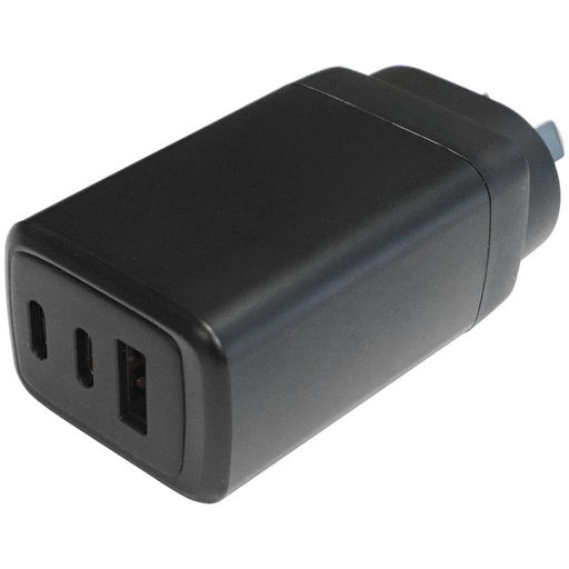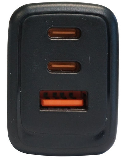 Mains USB Charger QC3.0 USB-A + 2x USB-C PD Socket (65W max), Black, Retail packaging