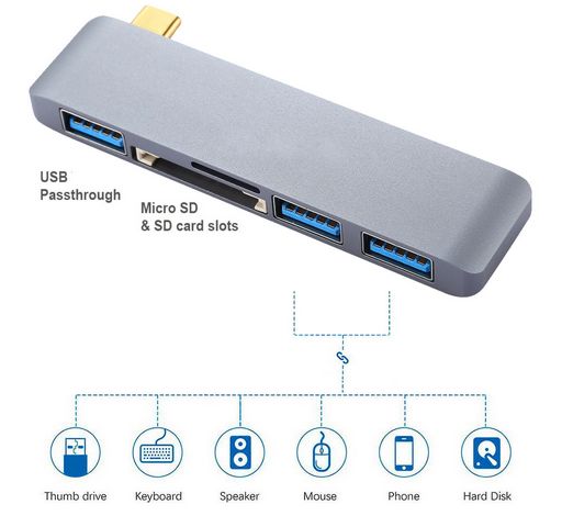 USB Type-C plug input 3x USB 3.0 port HUB SD card slot reader Micro SD card slot Suitable for Apple and Microsoft