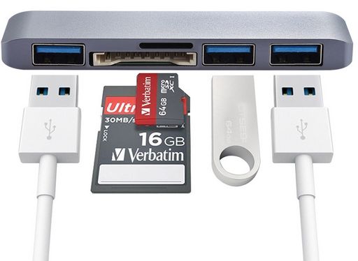 This multiport hub has a USB Type-C plug, 3x USB 3.0 ports, SD card slot and a Micro SD card slot. Suitable for Apple Macbook, Chromebook Pixel, Microsoft Surface Book and other laptops with a USB Type-C port. You can use the USB 3.0 ports to expand your notebook's connectivity options. The Micro SD and SD card reader allows you to conveniently download pictures or videos to your notebook. Compact and easy to carry and store.