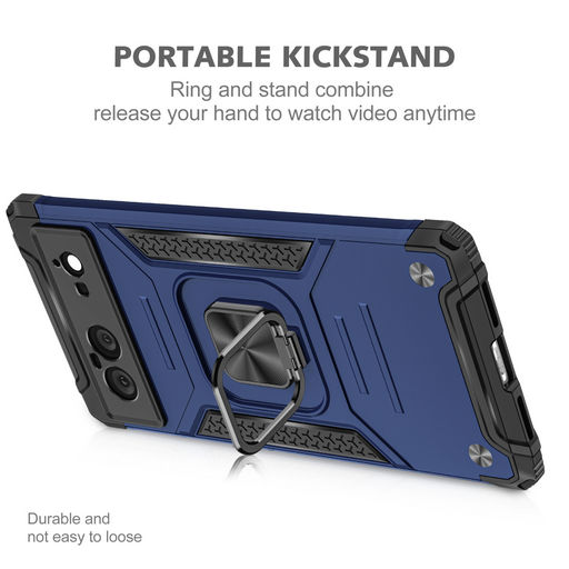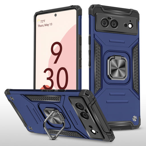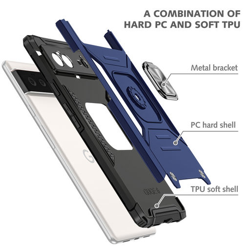 Shockproof Protective Armour Case With Rotating Ring Holder - Blue