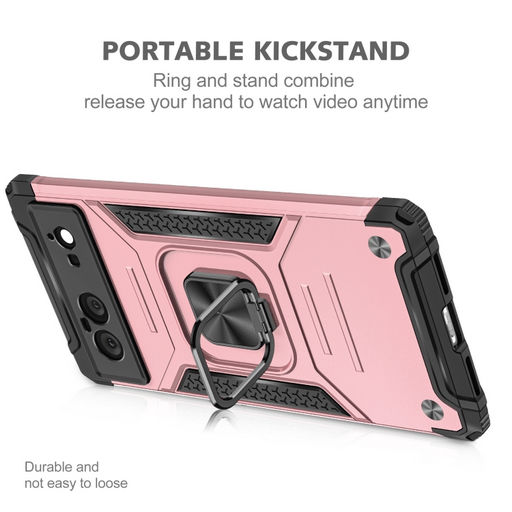 Shockproof Protective Armour Case With Rotating Ring Holder - Rose Gold