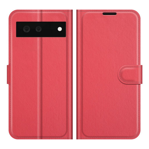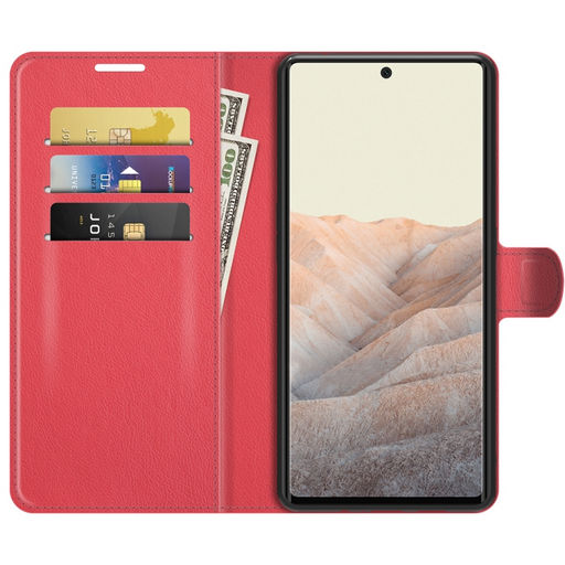Litchi Texture Leather Flip Case With Card Slot - Red