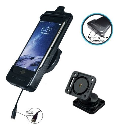 Smooth talker cradle can be used with a hands free car kit or after market stereo system. This cradle is designed to be installed into the vehicle that has an existing phone charging solution. Power through socket (Like to like) is on the base. The optional power source is not provided with the UA series as this cradle instead has a Through Connector to use existing accessories. This cradle has an external antenna connector with an FME male end.