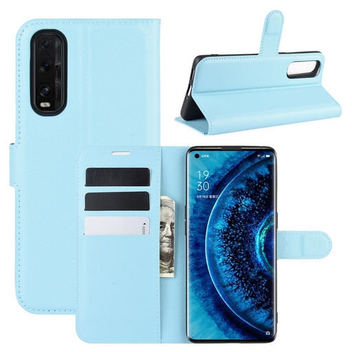 Litchi Texture Leather Case With Card Slot - Blue
