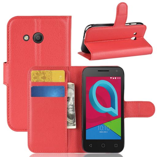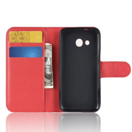 Litchi Leather Case With Card Slots-Red