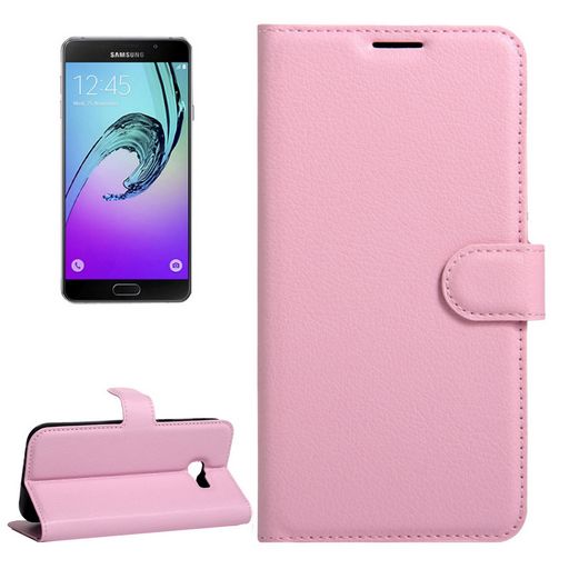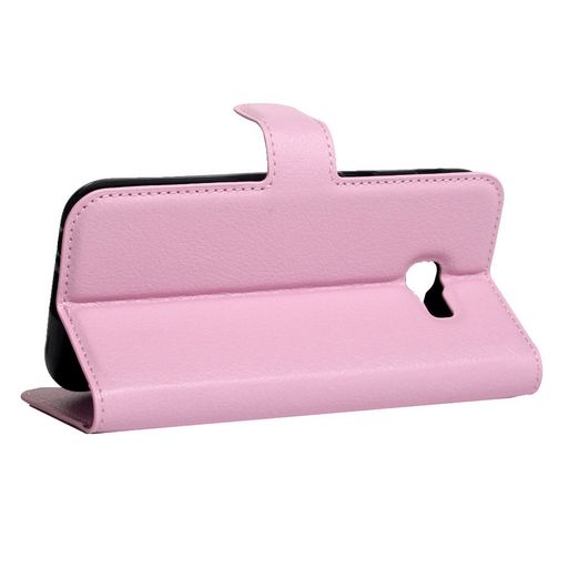 Litchi Leather Case With Card Slots-Pink Horizontal flip leather case with card holders for Samsung Galaxy A5. The case has a flip stand design which enables hands free viewing. It also has a tough protective cover.