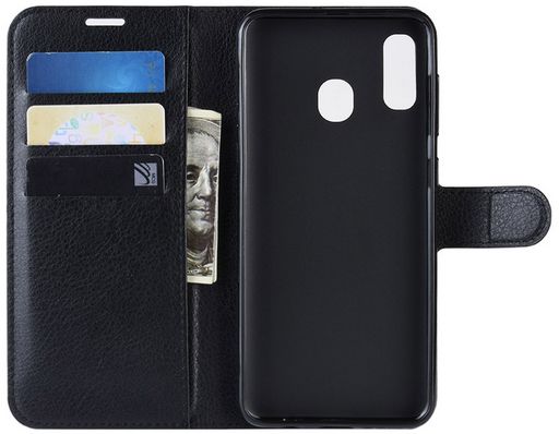 Litchi Leather Case With Card Slots - Black