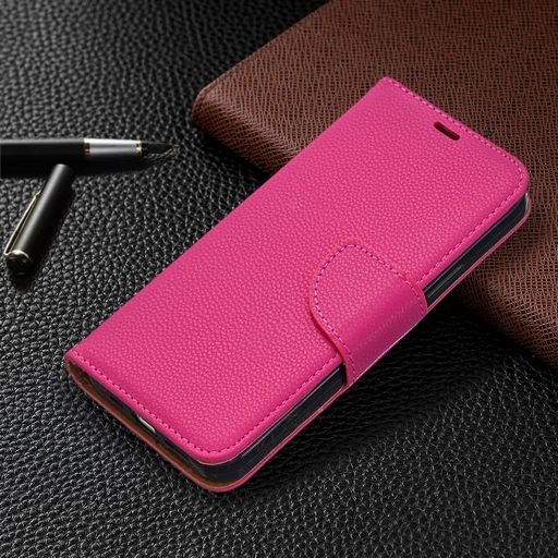 Litchi Texture Leather Flip Case With Card Slot - Pink