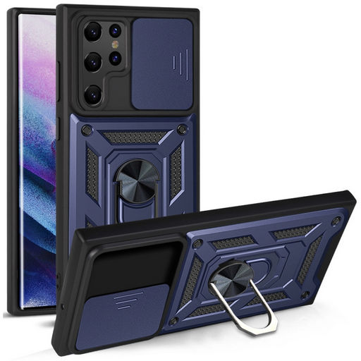 Shockproof Protective Armour Case With Rotating Ring Holder - Blue
