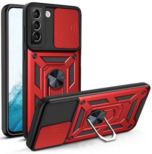 Shockproof Protective Armour Case With Rotating Ring Holder - Red