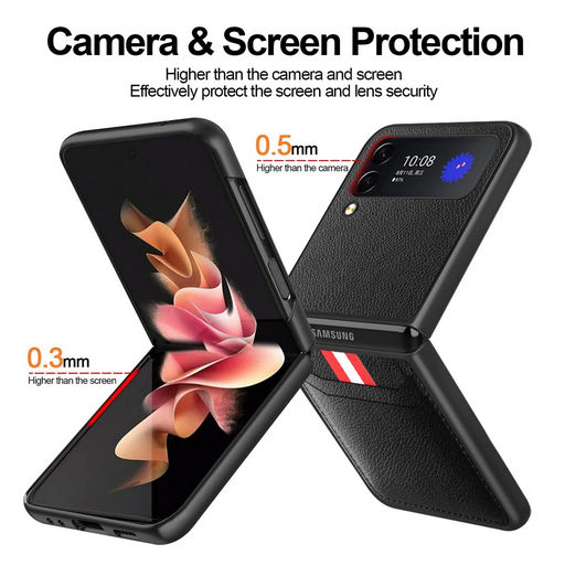 CELLINK Leather texture protective phone case with card slot to suit Samsung Z Flip4. All buttons and ports are easy to access. Easy to carry.