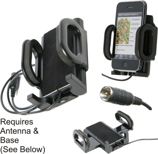 Padded Phone holder adjustable fingers. Inbuilt coupler with FME Male fly lead out for external antenna. Requires mount option & antenna.